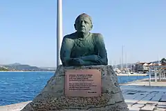 The statue of the poet Nikos Kavvadias in Argostoli, Kefalonia.