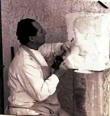 In 1967, Sofialakis was invited to the United States to participate in the Fine Arts Festival of Mediterranean Countries in New York where he presented his exhibition, entitled, The Gods of Greece, a theme consisting of 70 marble pieces featuring Ancient Greek mythological motifs.[23] His work was publicized at great length in print, radio, and television,[5][24] earning him great praise for his work, such that the Metropolitan Museum of Art requested his assistance with the restoration of antiquities on exhibit at the museum.[25]