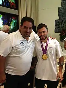 In 2012, Nimrod led Noam Gershony to two medals at the London Summer Paralympic Games.[6] The first medal, Bronze in doubles, shared with Shraga Weinberg, following a bronze medal match win against the Japanese team of Shota Kawano and Mitsuteru Moroishi.[7] A second medal, Gold, in singles, following a finals game in which Noam defeated world number one, David Wagner of the US.[8] This was Israel's only gold medal in the London Games[9] and the first ever singles medal in Israeli tennis history.[10] Following the Paralympics, Noam reached world number one, making him the second player that Nimrod had coached that had reached world number one in the rankings of the quad division of wheelchair tennis. Nimrod was part of the team that was honored at the Presidential Residence by President Shimon Peres and Prime Minister Benjamin Netanyahu in September 2012.[11]
