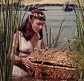 In 1951, Foch appeared with Gene Kelly in the musical An American in Paris, which was awarded the Best Picture Oscar that year. Foch also appeared in Scaramouche (1952) as Marie Antoinette. She returned to theater in 1955, appearing in a Off-Broadway production of Measure for Measure, followed by The Taming of the Shrew.[12] Next, Foch starred in Cecil B. DeMille's The Ten Commandments (1956) as Bithiah, the pharaoh's daughter, who finds the infant Moses in the bulrushes, adopts him as her son, and joins him and the Hebrews in their exodus from Egypt. In 1957, Foch was honored by the Maryland State Council of the American Jewish Congress with a special award for her performance in The Ten Commandments.[13]