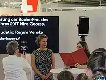 Nina George (born 30 August 1973) is a German writer, best known as the author of The Little Paris Bookshop, an international bestseller that has been translated into more than 28 languages as of 2015, and sold in more than 500.000 copies.[1] She has published 26 books (novels, mysteries and non-fiction) as well as over hundred short stories and more than 600 columns. George has worked as a cop reporter, columnist and managing editor for a wide range of publications, including Hamburger Abendblatt, Die Welt, Der Hamburger, as well as TV Movie and Federwelt.