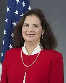 Nina Maria Fite is an American diplomat and a career member of the Senior Foreign Service who served as the United States Ambassador to Angola from 2018 to 2021.[1] Prior to assuming her role as ambassador, Fite served as Principal Officer at the U.S. Consulate General in Montreal, Canada.[2] Since becoming a diplomat in 1990, Fite has served at seven U.S. overseas missions.[3] On September 2, 2017, President Donald Trump announced his intent to nominate Fite to serve as an ambassador of the United States to Angola.[3] On September 5, 2017, her nomination was sent to the Senate.[4] Her nomination was reported favorably out of committee on October 26. She was confirmed by the United States Senate by voice vote on November 2, 2017.[4] She presented her credentials on February 14, 2018.[5] Her term as ambassador ended on November 8, 2021.[6] Fite's diplomatic assignments have included posts in Lahore as Consul General, in Kabul as Deputy Economic Counselor, and in Luanda as the Political/Economic Section Chief. She has also been on assignment with the Office of the United States Trade Representative.[7]