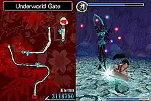 Use of Ryu's Ninpo will be activated by tapping an icon on the touch screen. This brings up the outline of a Sanskrit letter to be traced with the stylus.[4] Successfully tracing the letter will activate the appropriate magic.