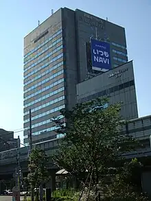 TV Asahi EX Tower in 1 Nishi-Azabu neighboring Roppongi, viewed from Roppongi Hills, over the Roppongi-dori (Roppongi street).