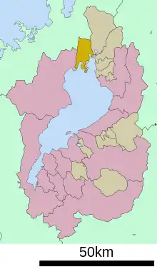 Nishiazai (西浅井町, Nishiazai-chō) was a town located in Ika District, Shiga Prefecture, Japan. It is on the northern tip of Lake Biwa.