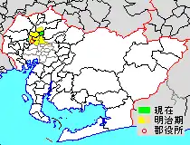 * yellow - areas formerly within the district borders during the early Meiji period