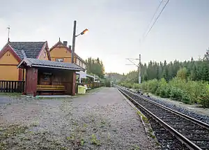 Nisterud Station is a railway station serving Notodden, Norway, on the Bratsberg Line. The station has only one track and one platform, and is served with an hourly service to Grenland by Vy.