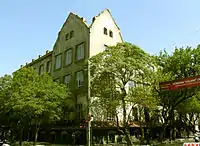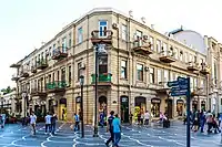 In 1896, a three-storeyed apartment house (Nizami 79) was built on the corner of Prachechnaya Street (later Gogol, now Mardanov Qardashlari Street) by architect I.V.Edel, by the order of oil magnate Murtuza Mukhtarov and in 1910, a new storey was added to it by architect Jozef Ploshko and it obtained a half-circled concept of a façade and a circled concept of a cupola.[13] Millionaire Haji Rajabli's house, now “Vatan” cinema (Nizami 75,77) was constructed on the left side of Torgovaya, between Mariinskaya and Prachechnaya Streets. On the opposite side was a building possessed by Mirza Taghiyev, a merchant from Shamakhi, where was located a popular shop of German confectioner Zeitz.[14]