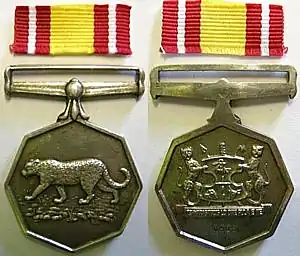 The Nkwe Medal (Leopard medal) was instituted by the State President of the Republic of Bophuthatswana in 1990, for award to all ranks for operational service.[1][2]