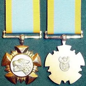 - 1 2 3 4 5 6 7 "Presidential Warrant by the President of the Republic of South Africa for the Institution of Honours for Bravery in the South African National Defence Force, Gazette no. 25213 dated 25 July 2003" (PDF). South African Government. Retrieved 19 March 2023.