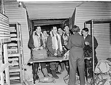 51 Squadron Halifax crew hand in their parachutes after a raid on the Ruhr