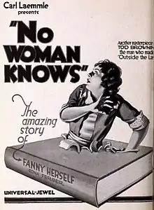 No Woman Knows is a 1921 American silent drama film directed by Tod Browning.[1] It was adopted from the Edna Ferber story Fanny Herself (1917). A complete print of the film survives at the Filmoteca Española in Madrid.[2]