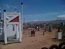 In 1989, Purifoy moved to a friend's trailer in the Mojave Desert, and over the last fifteen years of his life built what is now the Noah Purifoy Outdoor Sculpture Museum.[8] Located on 10 acres (4.0 ha) of open land near the town of Joshua Tree, California, the museum contains over one hundred works of art, including large scale assemblages, environmental sculptures, and installation art created by the artist between 1989 and 2004.[9] While giving the appearance of a salvage yard with tires, bathroom fixtures, TVs, ragged clothes, toys and vacuum cleaners, each piece has a story to tell. One piece has a water fountain labeled “White” and a toilet labeled “Colored”.[10] The museum is open to the public and is maintained and preserved by the Noah Purifoy Foundation, established in 1998.[5]