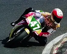 Nobuatsu Aoki (青木 宣篤, Aoki Nobuatsu, born August 31, 1971 in Sumaga) is a former Grand Prix motorcycle road racer. Aoki began his Grand Prix career in 1990 and won his first and only Grand Prix at the 250cc Malaysian Grand Prix. His best season was in 1997, when he finished third in the 500cc world championship behind Mick Doohan and Tadayuki Okada.[1] In 2009, he teamed with Daisaku Sakai and Kazuki Tokudome on a Suzuki GSX-R1000 to win the Suzuka 8 Hours endurance race.[2] He is the oldest of three Aoki brothers who have competed in motorcycle Grand Prix races.