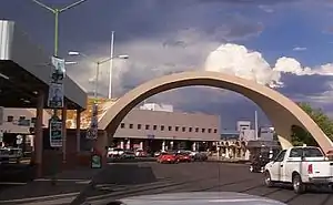 The Nogales Arizona Port of Entry on Grand Avenue has been in existence since the early 20th century. It connects Interstate 19 with Mexican Federal Highway 15. The port of entry is named after former Arizona Senator Dennis DeConcini. The border station was completely rebuilt in 1966 and upgrades to the pedestrian gates were made by the General Services Administration in 2012.[1] It is one of three border crossings in Nogales; the Nogales-Mariposa Port of Entry, built in 1973, handles commercial traffic west of the Grand Avenue crossing, while the adjacent Nogales-Morley Gate Port of Entry is used for pedestrians.