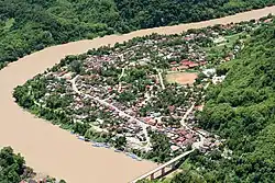 Nong Khiaw is a popular tourist destination because of the walking and cycling routes near the village and the mountain-climbing opportunities. The only good way to get there used to be by boat from Luang Prabang or Muang Khua, near the Vietnamese border. This is not the case anymore due to the construction of dams on the Nam Ou river since 2017.[1] There is also a road from Pak Mong to Hat Sao. The village is well known in Laos because of the bridge, which was given by China, that connects the two parts of the town. The bridge gives you a great view of the Nam Ou river, and the breathtaking rocks, mountains and hills around it.