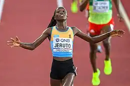 Norah Jeruto Tanui (Kazakh: Нора Джеруто Тануй, born 2 October 1995[1]) is a Kazakhstani (formerly Kenyan) long-distance runner specialising in the steeplechase. She won the gold medal in the 3000 metres steeplechase at the 2022 World Championships, becoming the first athlete representing Kazakhstan to win a title at the World Athletics Championships and setting a championship record in the process. Jeruto took gold in the event at the 2016 African Championships in Athletics.