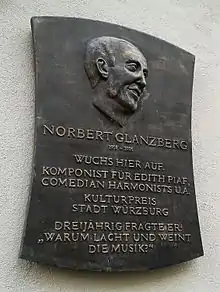 Norbert Glanzberg (12 October 1910 in Rohatyn, Austria-Hungary – 25 February 2001 in Paris) was a Galician-born French composer. Mostly a composer of film music and songs, he was also notable for some famous songs of Édith Piaf.