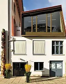 The foundations for the North American Native Museum Zurich were laid in 1961, when the city of Zurich bought the formerly private collection of Gottfried Hotz.[1][2] Two years later, the Hotz collection was installed in a school building in Zurich's Aussersihl district, where it was opened to the public as Indianermuseum der Stadt Zürich.[3][4] In 1977, Hans Läng succeeded Mr. Hotz and assumed office as curator of the Indianermuseum.[3][5] Mr. Läng expanded the collection until his retirement in 1993. This year proved to be a turning point in the history of the museum, as the new director / curator Denise Daenzer ventured into a re-orientation of the museum's work, presenting varying exhibitions of the collection's objects and special exhibitions addressing specific topics.[6]
