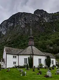 The 40 victims of the 1934 Tafjorden landslide and subsequent tsunami are buried in the church cemetery.
