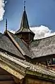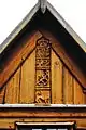 Dendrochronological dating of wood samples indicate that Nore stave church was built after 1167.[3] The church was built with galleries, a chancel and cross naves – an architectural style that was unique in Europe during the Middle Ages. This style has come to be known as Nummedals-type. Decorations are from different periods. Nore is decorated with tendril and animal carvings. Animal characters featured include dragons and lions.