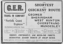 - ↑ "The Norfolk Coast Express. A new G.E.R. train". Eastern Evening News. England. 10 June 1907. Retrieved 26 December 2017 – via British Newspaper Archive.