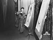 Edith, who was a foundation member of the Puppetry Guild of NSW, and served as its Secretary for many years is generally regarded today as the founder of as the founder of UNIMA Australia (Union Internationale de la Marionnette, of the International Puppetry Association). He gave regular performances at the sisters' Clovelly Puppet Theatre (which they had established in 1949),[28] which staged puppet shows every Saturday, in an old army hut in Burnie Park, Clovelly.[29][30] [31][32][33]