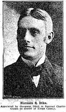 In 1902, New York Governor Benjamin B. Odell Jr. appointed Dike Kings County Sheriff, succeeding Charles Guden in a controversial move by Odell.[7][8] After serving for ten months, Dike was appointed commissioner of the State Tuberculosis Hospital.[2] Dike's prominence in society gave him the nickname, "society sheriff".[9]