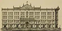 In 1866, he opened the Merchants' Bank of Watertown, which was incorporated as a stock company in April 1870, and he became CEO. In 1869, he purchased a cotton factory in Factory Square, and he began extensive improvements to the square.[4] The Carthage, Watertown and Sackets Harbor Railroad began construction in 1872 with Winslow as a director.[2] In 1873, he built the Winslow Block, a building in the Public Square in Watertown.[2] The building was acquired by W. W. Taggart in 1877, and was renamed to the Taggart Block.[5] On July 10, 1919, the building was destroyed by a fire with a loss of $300,000, equivalent to $5,063,724 in 2022.[5] Winslow built almost 100 buildings in the southeastern portion of Watertown.[1]