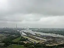 Norske Skog Walsum is a pulp mill and paper mill situated in the Duisburg neighborhood of Walsum, the German state of North Rhine-Westphalia. The mill starts operations in 1962, established by Haindl and owned by Norske Skog from 2001. Since the 1990s the mill had two paper machines producing lightweight coated paper, a type of magazine paper. Both paper machines have a trimmed width of 725 centimeters (285 in). PM4 has an annual production of 225,000 tonnes, PM10 has 215,000 tonnes.[1] The mill used as its source one-third thermomechanical pulp, one-third kraft pulp and one-third coating. The mill is situated on the Rhine.[2] Until production curtailment in 2013, the mill employed 460 people.[3]