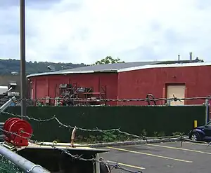 ![]() Former roundhouse building seen from behind a fence in 2012. | |||||||||||