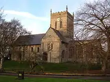 The parish church of St Nicholas was designated a Grade I listed building in 1968 and is now recorded in the National Heritage List for England, maintained by Historic England.[5] Built about 1140, it has been described as the "finest Norman church in East Yorkshire". It has a cruciform plan without aisles and with a tall central tower. Four Norman doorways make the building rare.[6] Pevsner describes the church as the most complete Norman church in the East Riding.[7] The church has a Coronation Clock which was installed at the coronation of George V in 1911.[6]
