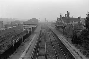 The Midland Railway main line referred to crossed over the N&P line to the east of Wellingborough; it opened in 1857, and a spur connection trailed into the N&P line from it, opened in 1859.[25] It was closed in 1966.