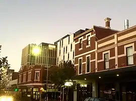 Draining of the swamps commenced in the 1860s, by convict labour, facilitating the construction of more permanent buildings.[3] The gold boom of the 1890s saw the construction of many hotels for the accommodation of prospectors, including The Great Western Hotel (built 1896, now the Brass Monkey Hotel).[3][4] The 1890s saw the area home to the state attorney-general and many other wealthy or influential people.[3]