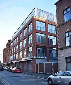 The Northern Ireland War Memorial also called NI War Memorial[1][2] and War Memorial[1] was opened in 2007 in Talbot Street, Belfast, Northern Ireland. It replaced an earlier building called Memorial House which was located in Waring Street on a site which was bombed during the Blitz in 1941. It contains the Home Front Exhibition and the first national memorial to the hundreds killed in the Belfast blitz, created by Carolyn Mulholland.[1][2]