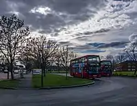 Archaeological evidence suggests that the settlement's origin was an 8th-century Saxon village close to Northolt Manor behind the present Court Farm Road.[4] It is mentioned in the Domesday Book as Northala, part of the Elthorne Hundred in the historic county of Middlesex, England. In 1066 the lord was Esger the constable, and in 1086 was Geoffrey de Mandeville.[5] Northolt Manor itself was built in the fourteenth century and provides much of the archeological information of the area from its excavations in the 1950s and onward. A Tudor barn built in 1595 from Smith's farm in Northolt was moved to Chiltern Open Air Museum and is now on display there.[6] In the early part of the 18th century farmland was enclosed in order to provide hay for the City of London, alongside more traditional crops such as peas and beans. Up to late Victorian times, the area was rural with predominantly arable crops being grown.