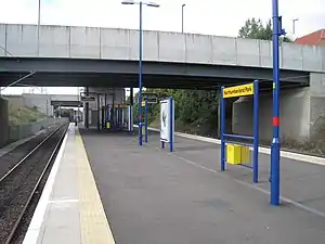 A planning application for the new National Rail station was submitted to North Tyneside Borough Council on 2 February 2021.[12] The submitted planning documents indicate that the station will have a single platform, located on the north side of Network Rail track,[13] which is designed to accommodate a four-car train.[14] It will be provided with two waiting shelters[14] and, like the Metro station, it will be accessed from Algernon Drive via stairs and a lift.[13] Approval for the new station was granted on 17 September 2021.[15]