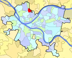 - 1 2 "PGHSNAP 2010 Raw Census Data by Neighborhood". PGHSNAP Utility. Pittsburgh Department of City Planning. 2012. Retrieved 24 June 2013.