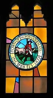 Stained-glass window in Norwood Town Hall depicting town seal.[2]