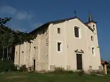 The church is set near the border between Trivero and Mosso. Its strategic position led to a battle, painted in the bigger church. On the fresco there is a writing describing the event: "On 25 March 1643, day of the Annunciation, many gunshots were shot, with no offense for anyone thanks to a miracle of the Virgin Mary".[1]
