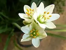 Nothoscordum × borbonicum, also known as honeybells,[1] fragrant false garlic[2] and onion weed, is a bulbous perennial. It has become naturalized as a nearly cosmopolitan weed.[3] The whitish flowers are sweetly scented. It is a hybrid between N. entrerianum and N. gracile.[4]