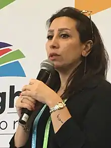 Noura Ghazi (نورة غازي), or Noura Ghazi Safadi ( نورة غازي صفدي ) (born September 30, 1981) is a Syrian human rights lawyer and activist.[1] Her husband, the Syrian-Palestinian Bassel Khartabil (Arabic: باسل خرطبيل), or Bassel Safadi (Arabic: باسل صفدي) was an open-source software developer and one of Syria's leading pro-free speech and democracy activists.[2] He was arrested by the Syrian government in 2012 and executed in 2015.[3]