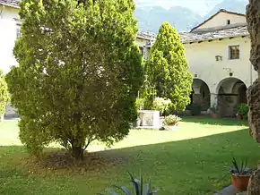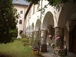 Novalesa is in the Val di Susa, on the route to the Mont Cenis Pass, and on the former Via Francigena, a major pilgrimage road.[2] The abbey is still in operation as an active Benedictine monastery.[3]