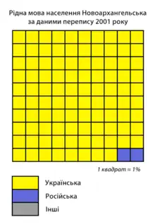 According to the 2001 Ukrainian census, 98% of the inhabitants spoke Ukrainian as a first language and 2% Russian.[3]