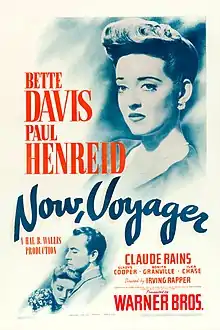 Now, Voyager is a 1942 American drama film starring Bette Davis, Paul Henreid, and Claude Rains, and directed by Irving Rapper. The screenplay by Casey Robinson is based on the 1941 novel of the same name by Olive Higgins Prouty.[4]