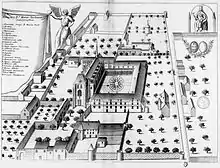 17th-century engraving of Noyers Abbey (Monasticon Gallicanum)