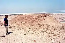 Excavations indicate Numeira was a 0.5-hectare (1.2-acre) walled settlement, though it may have been twice the size we see today.[11] Though only 30% of the site was excavated (c.1500 m2) between 1979 and 1983.[12] The settlement was located on the southern bank of the Wadi Numeira.[13]