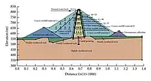 | Type of dam | Embankment, central core, rock-fill |