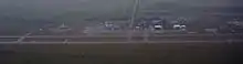 Nursultan Nazarbayev International Airport is 6.5 NM (12.0 km; 7.5 mi) south-east of Astana city centre.[16] It is bordered by the village of Kyzylsuat to the west, Maybalyk lake to the north, and the city of Koshy in Akmola Region to the east.