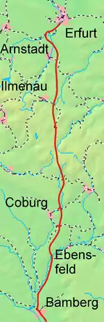 107. 1 2 "Lückenschluss der Neubaustrecke Ebensfeld–Erfurt zwischen Bayern und Thüringen • Projekt auf der Zielgeraden" (Press release) (in German). Deutsche Bahn. 9 September 2016. Archived from the original on 12 September 2016. Retrieved 13 December 2017.